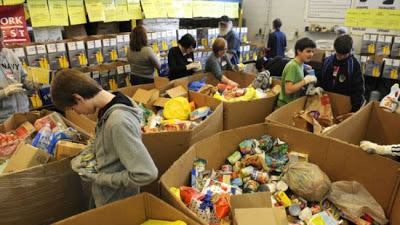 Volunteers working in one of the many food banks in Canada